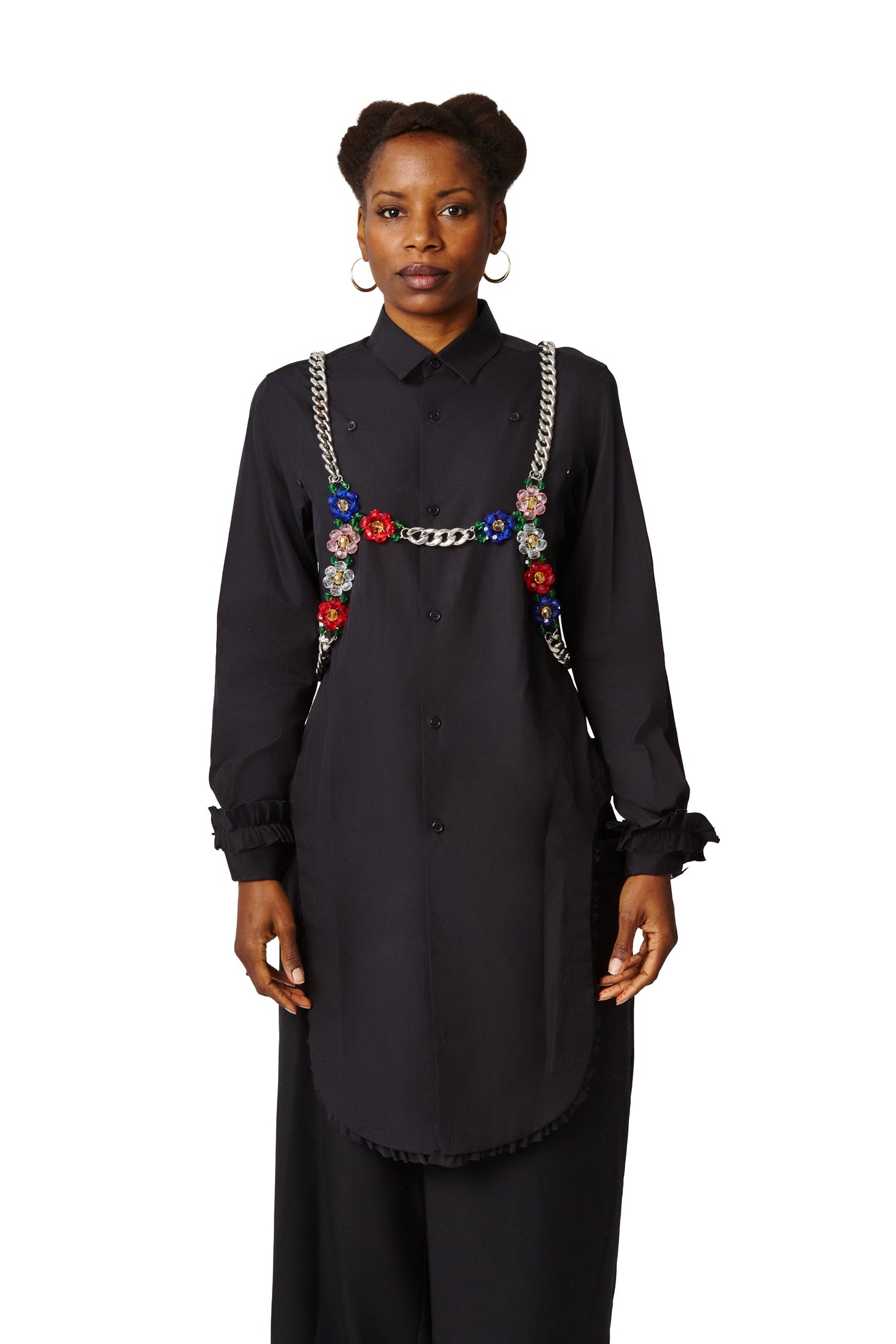Black Long Sleeve Ruffle Blouse