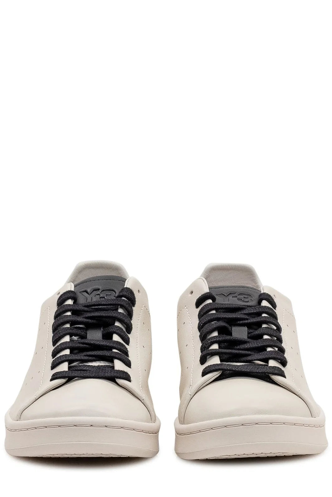 adidas Y-3 S/S 2026 Stan Smith round-toe sneakers crafted with premium leather upper and Cold Cement construction with rubber outsole.