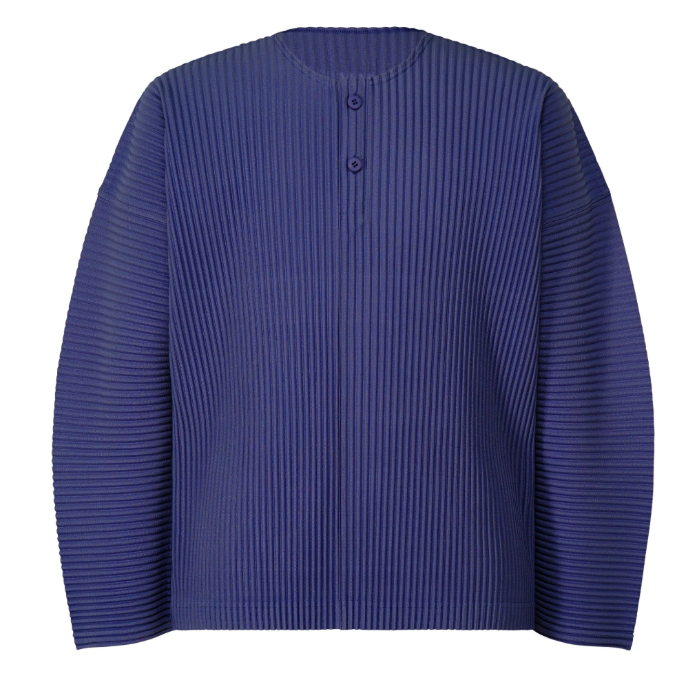 HOMME PLISSÉ S/S26 This henley-neck top is characterized by its portability and light comfort with the unique quick-drying property of polyester material. The simple design pairs well with a wide range of styles.