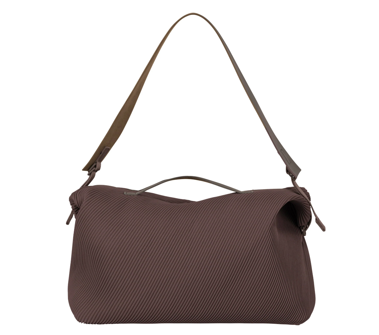 HOMME PLISSÉ S/S26 This large-capacity bag leverages the lightness and suppleness of pleats. The design allows it to be worn on the shoulder or across the body, with a wide shoulder strap that provides stability and comfort in use. It has ample interior pockets and is sized for carry-on use, making it an ideal item for travel and other purposes.