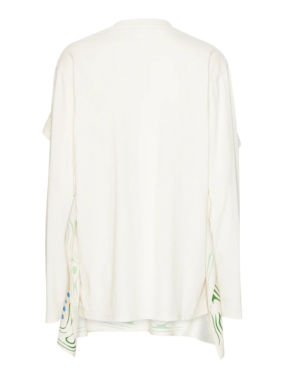 Henrik Vibskov A/W 2025 long sleeve cotton t-shirt with multicolour feather print and loose fit.